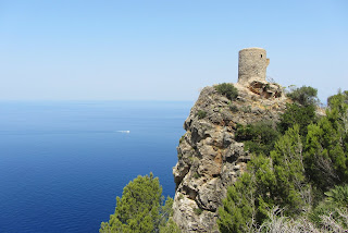 Je ráno a už jsem zase namazaná! Loučíme se s bytečkem, po e-mailu s Gerardem (od přivítání jsme se už nepotkali) a vydáváme se zkoumat hornaté západní pobřeží. Úkol dne číslo 1 zní keška na jakési Sloní skále (když kajak trip nevyšel), tak jedem směrem k ní. Mám chuť na kafe a potřebuji toaletu. Vesmír mě vyslyšel! Zrovna jedeme kolem jakési vyhlídky s restaurací. V průvodci říkali, že to Mallorské kafe se má ochutnat, tak dáváme dos cafes con leche! Chutná jako laciné rozpustné, ale úchvatný výhled na útesy to zachraňuje! Jedeme dál a potkáváme jakousi věžičku: „Hele, Michalovická putna!“ Vystoupáme na ní a povídám: „Tady to smrdí keškou! Tady musí být!“ a vida! Ve vteřině jí nacházíme! (Oprava: Ve vteřině ji Petr nachází! revidováno Petrem)