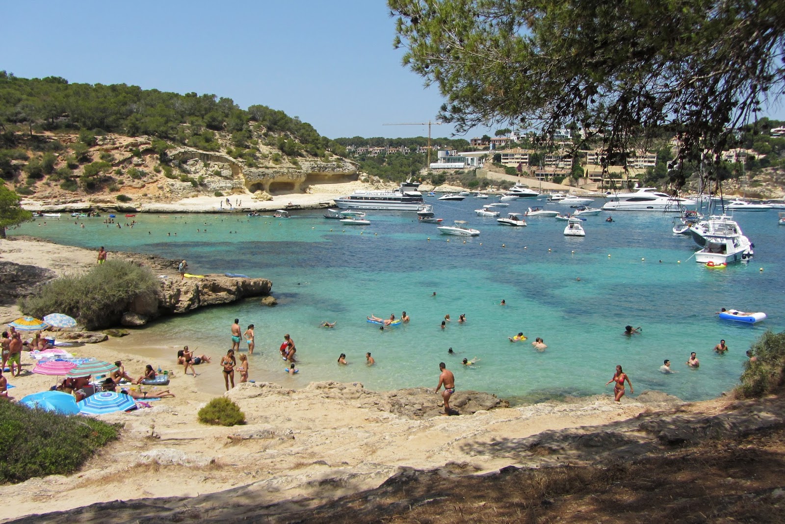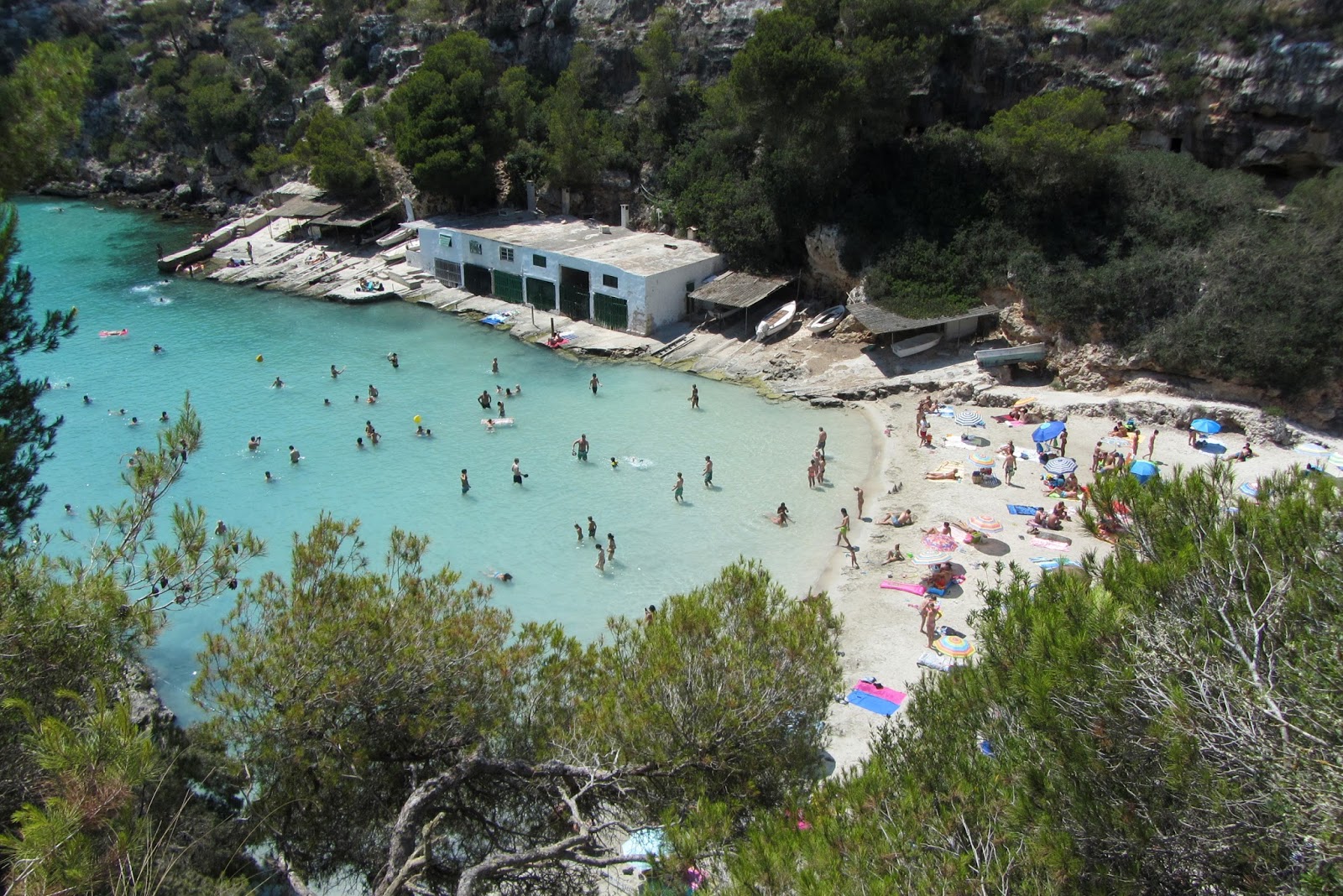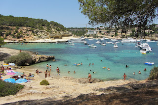 Dnešním cílem je pláž Varques – prý klidná, tichá, skoro prázdná… Cestou nejprve navštívíme přístavní městečko Porto Cristo, které se mi moc líbí, pak se vydáváme přímo na onu pláž. Když přijíždíme k prašné cestě, kde se má dle návodu z internetu zaparkovat, nacházíme asi tříkilometrovou frontu zaparkovaných aut. Aha, tak tady asi nebudeme sami. Ale když už jsme tu, jděme se tam podívat. A skutečně. Jak nás varovala auta, tak to na pláži vypadá. Přeplněná pláž škvařícího se masa. Asi se to hodně rozkřiklo, že je to „klidné“ místo. Všude bývá azurová voda, skoro jako v Karibiku, tady je podivně zeleno-žlutá. Jestli to nebude tím, že tu nejsou veřejné záchodky? V tomhle tedy plavat nebudeme. Ani moc pěkně na kytaru hrající a reggae zpívající hipík mě nezlomí, abychom si mezi ta masa dali svou deku. Jdeme pěkně půl hodiny pěšinou zpátky k autu a vyrážíme jen tak za nosem. Tip na další pláž už nemáme, uvidíme, co nás cestou cvrnkne do nosu.