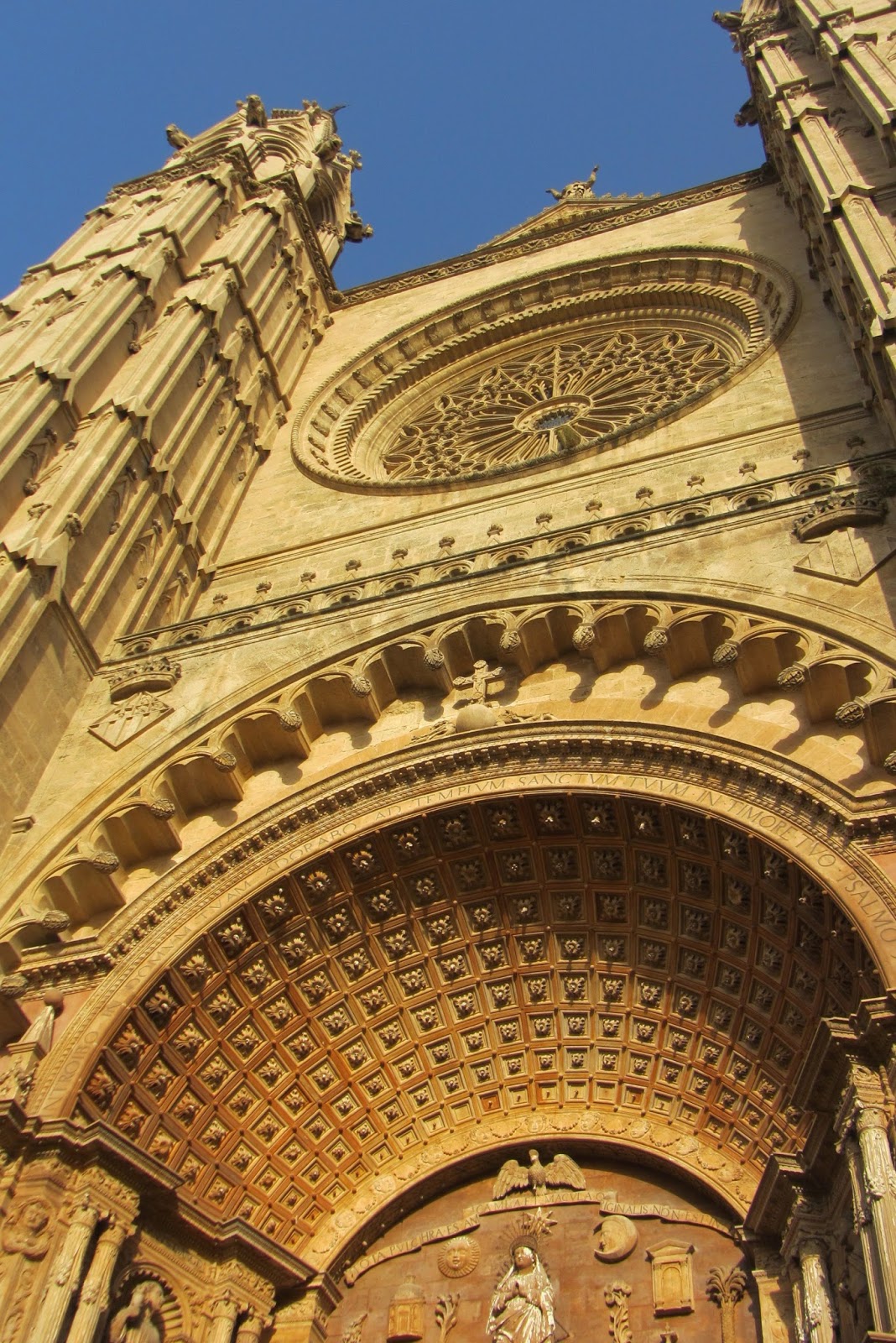 Je půl páté odpoledne, měli bychom se hnout do víru velkoměsta, no ne? A tak vyrážíme. Cílem je najít tři kešky – jednu u pláže, druhou u katedrály a třetí kdesi v centru. Díky téhle trase si prohlídneme město! Zjišťujeme, že Palma je větší než jsme čekali. Od apartmánu k moři je to asi 2 km. Vydáváme se tedy směrem, kde asi tak může být moře. Cestou zkoušíme naší GPS navigaci a zjišťujeme, že ani s novými baterkami prostě nefunguje. Asi je jí taky vedro! No nic, nevzdáme to. Docházíme k přístavu a světe div se, nacházíme první kešku! Ještěže jsem poctivě naštudovala ty hinty (rozuměj nápovědy). Z dálky vidíme katedrálu, tak míříme k ní. Na místě druhé kešky nacházíme britskou rodinku, koukajíce kamsi nahoru. Hint zněl: Up above!, tak se přidáváme a koukáme nahoru všichni! Dávám se s nimi do řeči, protože je očividné, že si nás museli taky všimnout. „Tak kdopak ji najde první?“ říkám a po chvilce vyhrávám! „Jak tě napadlo, že bude za kamenem?“, ptá se britka. Odpovídám: „Většinou je přeci za nějakým kamenem!“ Nakonec se dozvídám, že je to její úplně první keška, potom chápu.