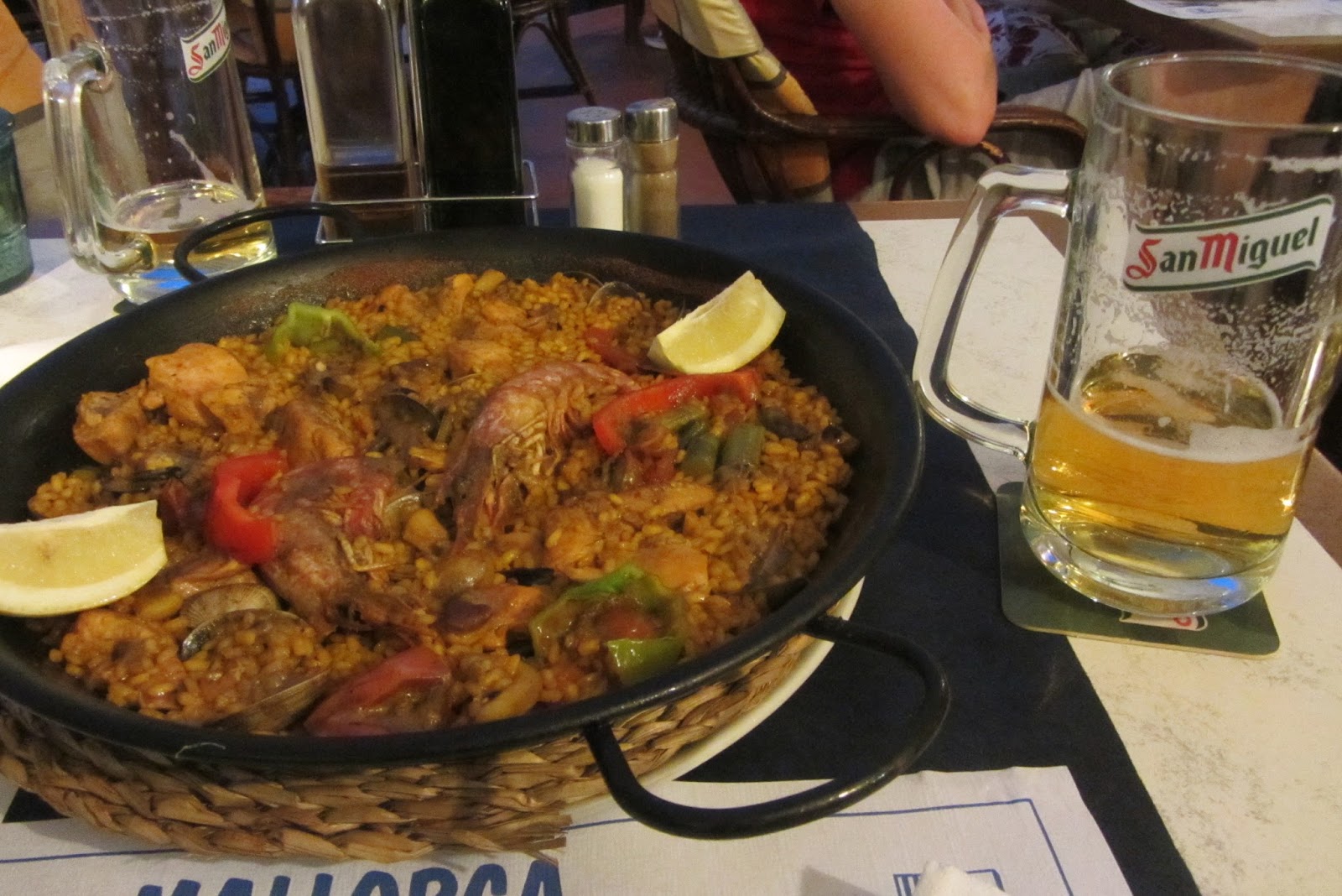 Je to fajn, bydlíme v centru, 400 metrů od dvou pláží, uprostřed barů a restaurací. Tady to večer bude žít! Že bychom si konečně zatančili? Po další koupačce aneb vypadá to, že naše norma je navštívit dvě pláže denně, se jde na večeři. Ještě nikdy jsem nejedla pravou španělskou Paellu. Kde jinde si jí dát? Dnes se plácnem přes kapsu! Paella vypadá hezky, smějí se na nás z pánve dvě obří krevety. Jak se toto vlastně jí? Připadám si tak trochu jako obyvatelé Hoštic v Itálii, naštěstí se mi na talíři už nic nehýbe. 🙂 Nakonec máme snědeno vcelku rychle. Byla moc dobrá, leč pánev poněkud mělká. Máme hlad, doženeme to rumem s colou. Jak jsme četli, na Mallorce se přeci začíná žít až po půlnoci. Dáme si tedy na hotelovém pokoji drink a vydáváme se do víru města později. K našemu překvapení však všude o půlnoci zábava končí, a tak se nám povede poslechnout poslední píseň večer hned ve třech barech za sebou. Vypadá to, že si zatančíme až doma.