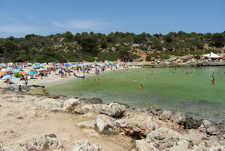 Dnešní den prožíváme ve španělském duchu. Brzy ráno na pláž Torta (jsme tam první a zabíráme skvělý flek ve stínu na skále s výhledem na celou pláž), čteme si, koupeme se, pohoda, klídek… (tabáček tedy opravdu ne), odpoledne si v našem novém apartmánu dáváme siestu, k večeři chilli con carne (ehm, z konzervy). Ještě by to chtělo siestu (nešpanělsky mluvící, čti párty)! Jenže turistické letovisko Canyamel je poněkud poklidné (pokud se zrovna španělští sousedi nehádají na balkoně). A tak si dáme alespoň sklenku španělského vína a jdem na kutě. Jedinou aktivitou tohoto dne bylo tradiční k bojce a zpět. A abych nezapomněla, snažili jsme se taky najít internetové připojení zdarma, jako správní batůžkáři, obcházejíc hotely a doufajíc ve free wifi. Leč marně. Všechny řádně zaheslovány. V Thajsku mají internet všude a zadarmo, ale v západní civilizaci to ne! Když už je internet, tak si za něj plať! Nakonec tedy jdeme do vedlejší restaurace na cappuccino. Tomu říkají cappuccino?!? Rozpustný kafe se šlehačkou?? Já myslela, že to je „Vídeň“!