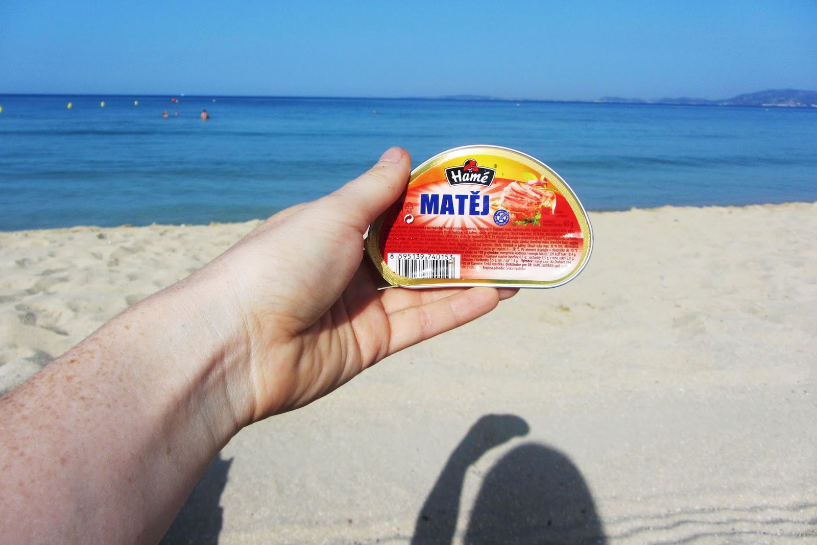 Jsme ve vodě, netušíce, vznášíme se na hladině, když v tom se všichni srocují na břehu a ukazují do vody, kamsi naším směrem. Plavčík ošetřuje nějakého kluka. Po chvíli zaslechneme něco jako jelly fish. Jejda! Jdeme raději z vody. Pozorujeme, jak se pán snaží medúzu vylovit. Kolem veze na lehátku holku kluk, tak se je pán snaží před medúzou varovat. Vypadá to na Čechy, pomyslím si, a skutečně! Holka chlapovi česky (jak typické) říká: Nerozumim! a že je z Ček repablik. Tak na ní ze břehu křičím, že jelly fish znamená medúza. Očividně je to ale nijak nezneklidňuje a plavou si dál.