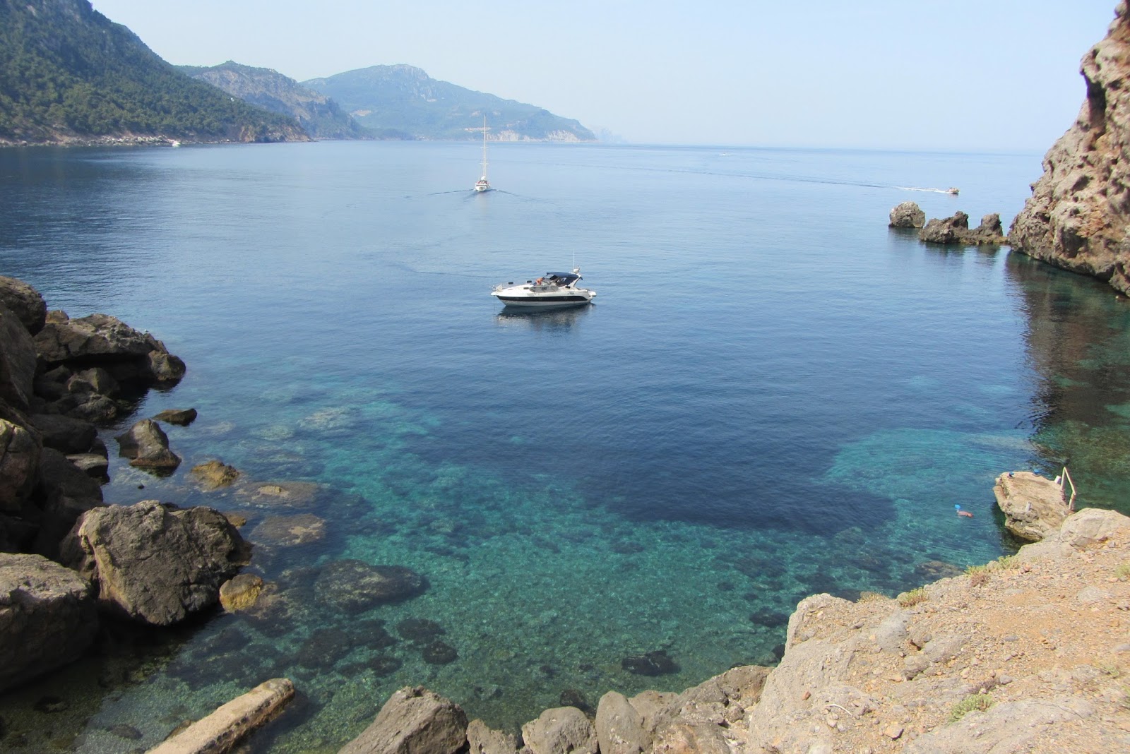 A cvrnklo. Odbočka na Playa Mitjana, kterou jsme málem přejeli. Sice si na té kamenité cestě málem strhneme podvozek, ale touha po vodě je čím dál větší. Dostáváme se na pláž vskutku malinkatou, krásně upravenou, obklopenou jakýmsi areálem očividně pro bohatší vrstvy. Všude je zákaz vstupu, jen na plážičku chudí pocestní můžou. Je to od nich hezké, že ji nezavřeli úplně. Vykoupeme se, ale úplně free se tam necítíme, a tak se vydáváme dál, ubytovat se na předposlední noc na Mallorce do hotelu v letovisku Cala d´Or.